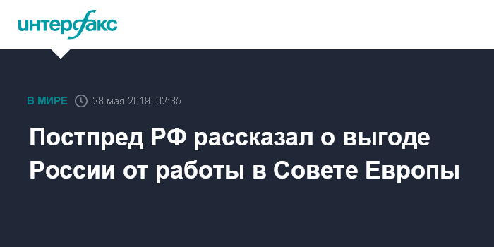 Постпред РФ рассказал о выгоде России от работы в Совете Европы