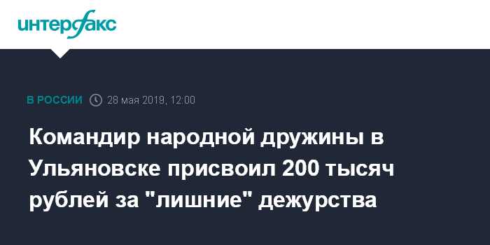 Москва. 28 мая. INTERFAX.RU - На командира народной дружины в Ульяновске завели уголовное дело о мошенничестве, сообщает во вторник областная прокуратура.