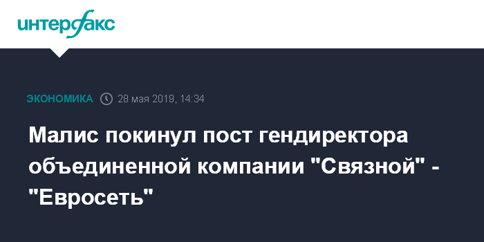 Малис покинул пост гендиректора объединенной компании "Связной" - "Евросеть"