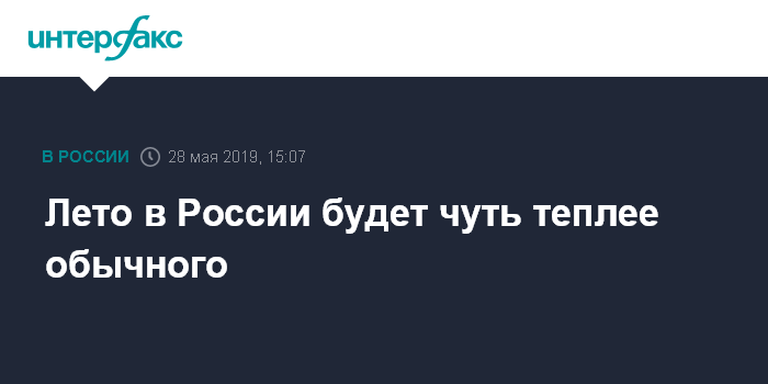 Москва. 28 мая. INTERFAX.RU - Специалисты Гидрометцентра России провели анализ данных всемирных центров погоды, чтобы определить, каким будет лето в стране, предварительный результат - температура в июне, июле и августе в этом году будет около или выше нормы.
