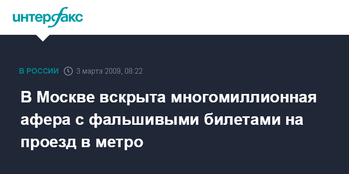 Москва. 3 марта. INTERFAX.RU - Оперативники отдела по борьбе с экономическими преступлениями в московском метрополитене вскрыли беспрецедентную аферу со сбытом поддельных билетов на проезд в московской подземке.