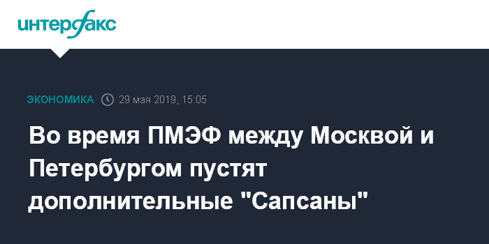 "Для удовлетворения повышенного спроса на поездки между Москвой и Санкт-Петербургом в дни Петербургского международного экономического форума ОАО "РЖД" назначает дополнительные поезда "Сапсан", - говорится в сообщении.