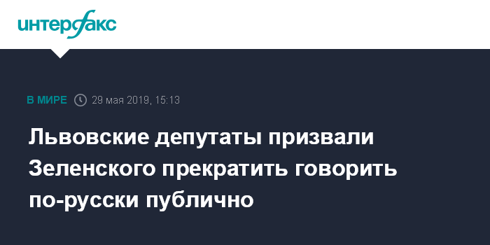 Москва. 29 мая. INTERFAX.RU - Депутаты Львовского областного совета приняли обращение к президенту Украины Владимира Зеленскому по недопустимости игнорирования статуса государственного языка и использования его в своей публичной деятельности.