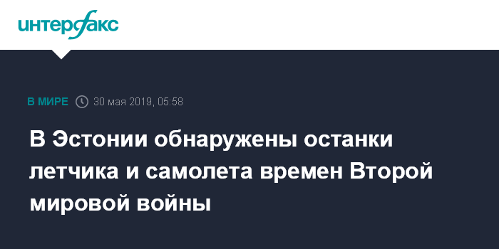 Москва. 30 мая. INTERFAX.RU - В Эстонии близ города Тарту обнаружены останки летчика и фрагменты сбитого самолета времен Второй мировой войны.