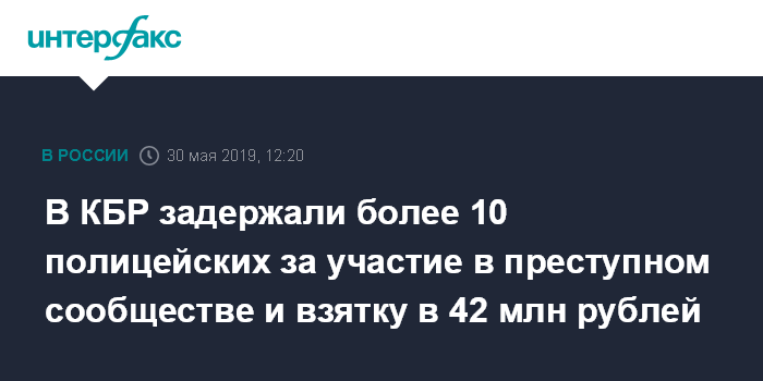 В КБР задержали более 10 полицейских за участие в преступном сообществе и взятку в 42 млн рублей