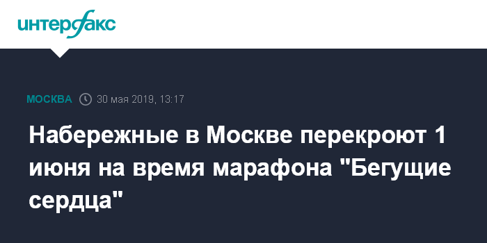 Набережные в Москве перекроют 1 июня на время марафона "Бегущие сердца"