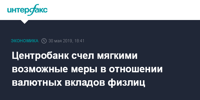 Москва. 30 мая. INTERFAX.RU - ЦБ РФ считает мягкими возможные меры в отношении валютных вкладов физлиц в части повышения для банков ставок отчислений в фонд обязательного резервирования (ФОР) и систему страхования вкладов (ССВ) по этим средствам.