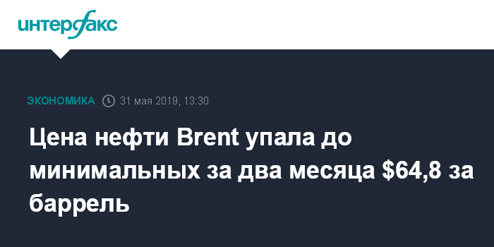 Москва. 31 мая. INTERFAX.RU - Падение цен на нефть эталонных марок в ходе торгов в пятницу ускорилось, в результате чего они опустились до минимальных отметок более чем за два месяца. Снижение котировок по итогам мая может стать максимальным месячным падением с начала текущего года.