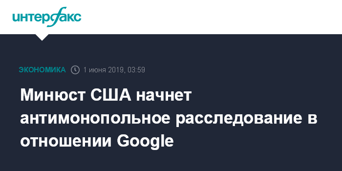 Москва. 1 июня. INTERFAX.RU - Министерство юстиции США начало готовить антимонопольное расследование в отношении компании Alphabet, владельца поисковой системы Google, сообщила в субботу The Wall Street Journal со ссылкой на источники.