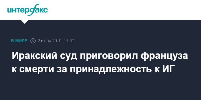 Москва. 2 июня. INTERFAX.RU - Суд Ирака приговорил к смертной казни восьмого француза за участие в террористической группировке "Исламское государство" (ИГ, запрещена в России), передают в воскресенье западные СМИ.
