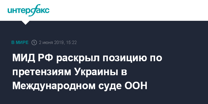 Москва. 2 июня. INTERFAX.RU - МИД РФ заявил о своей позиции перед устными слушаниями в Международном суде ООН 3-7 июня по делу, инициированному Киевом в январе 2017 года.