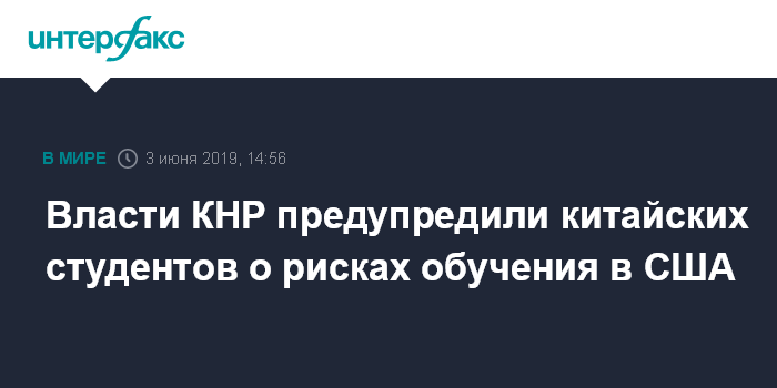 Москва. 3 июня. INTERFAX.RU - Власти КНР советуют китайским студентам взвесить возможные риски, связанные с обучением в США, сообщают западные СМИ со ссылкой на заявление министерства образования Китая.