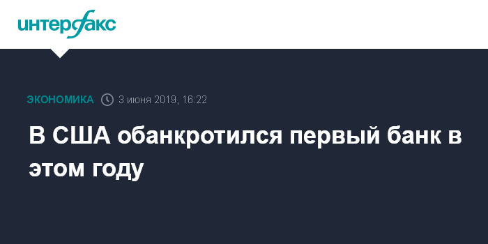 Москва. 3 июня. INTERFAX.RU - Регулирующие органы американского штата Техас прекратили деятельность The Enloe State Bank, который стал первым банком, закрытым в США с начала 2019 года, сообщается в пресс-релизе Корпорации по страхованию депозитов США (FDIC).