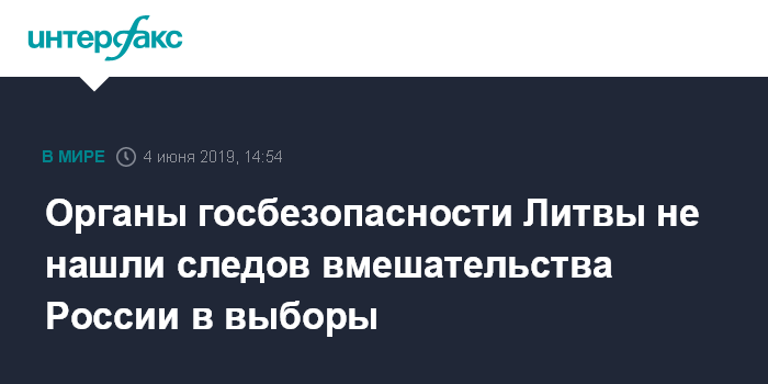 Москва. 4 июня. INTERFAX.RU - Глава Департамента госбезопасности (ДГБ) Литвы Дарюс Яунишкис заявил, что разведка не обнаружила вмешательства России в президентские выборы.