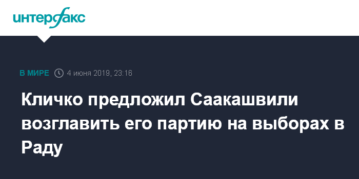 Москва. 4 июня. INTERFAX.RU - Мэр Киева, лидер партии "УДАР" Виталий Кличко заявил, что его партия будет принимать участие во внеочередных парламентских выборах, а также предложил вернувшемуся на Украину экс-президенту Грузии и бывшему губернатору Одесской области Михаилу Саакашвили стать главой этой политической силы.