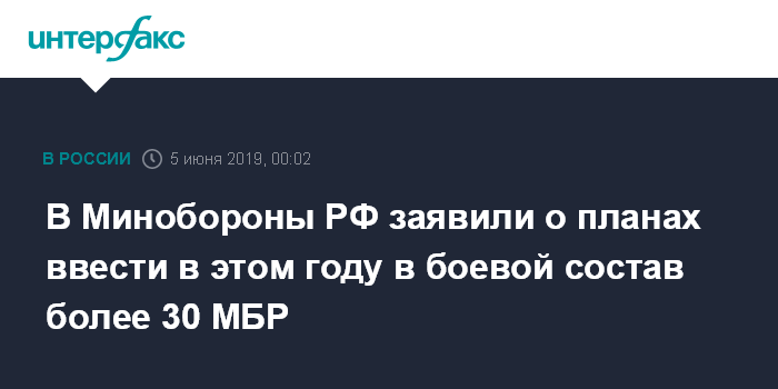 Москва. 5 июня. INTERFAX.RU - Ракетные войска стратегического назначения (РВСН) в этом году получат в боевой состав более 30 межконтинентальных баллистических ракет, сообщили в среду в министерстве обороны России.