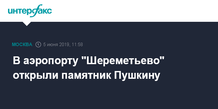 Москва. 5 июня. INTERFAX.RU - Памятник Александру Пушкину открыт накануне его 220-летия в международном аэропорту Шереметьево, отныне носящим имя поэта.
