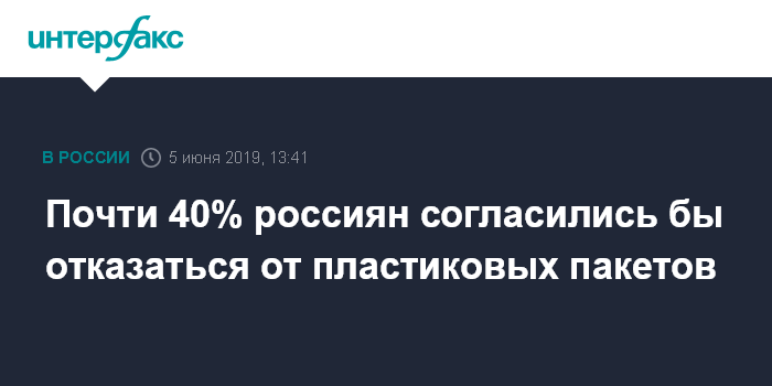 Москва. 5 июня. INTERFAX.RU - По данным всероссийского центра изучения общественного мнения (ВЦИОМ) 85% россиян допускают возможность отказа в той или иной степени от использования пластиковых пакетов, при этом только 25% россиян используют их повторно.