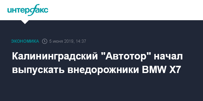 Москва. 5 июня. INTERFAX.RU - Группа компаний "Автотор" запустила производство BMW X7 на заводе в Калининграде.