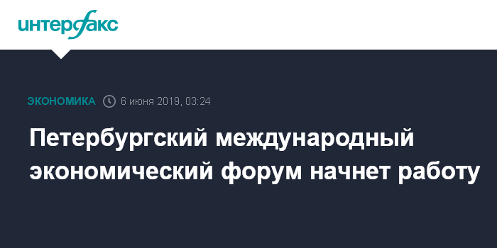 Москва. 6 июня. INTERFAX.RU - Петербургский международный экономический форум (ПМЭФ-2019) откроется в конгрессно-выставочном центре "Экспофорум" в четверг, 6 июня, его работа завершится в субботу, 8 июня. Главная тема форума в этом году - "Формируя повестку устойчивого развития".