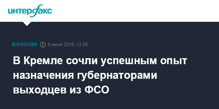 Москва. 6 июня. INTERFAX.RU - В Кремле считают успешной практику назначения на губернаторские посты выходцев из Федеральной службы охраны и подчеркивают, что врио губернатора Астраханской области Сергей Морозов ушел в отставку по семейным обстоятельствам.