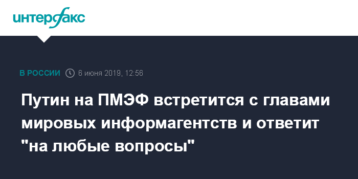Путин на ПМЭФ встретится с главами мировых информагентств и ответит "на любые вопросы"