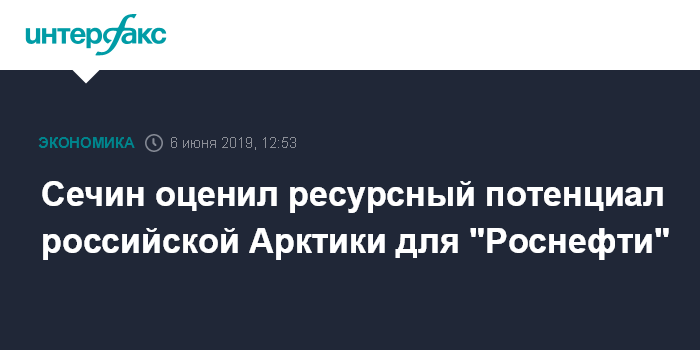 Москва. 6 июня. INTERFAX.RU - Ресурсный потенциал российской Арктики для возможных проектов "Роснефти" превышает 20 млрд тонн нефти, сообщил главный исполнительный директор НК Игорь Сечин, выступая на Энергетической панели ПМЭФ.