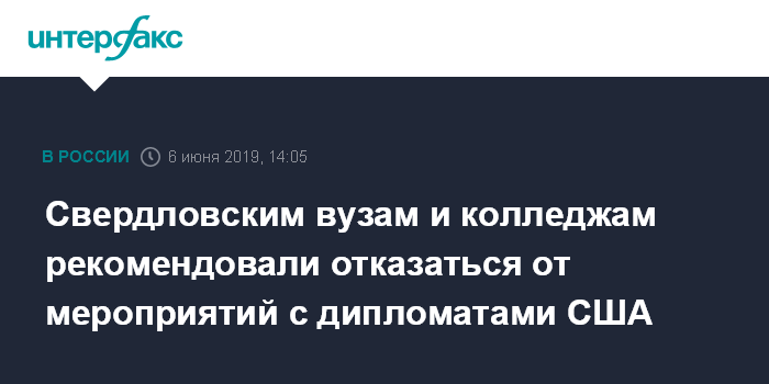Москва. 6 июня. INTERFAX.RU - Департамент информационной политики Свердловской области занялся проверкой информации о том, что министерство образования региона направило письма в вузы и колледжи с рекомендацией не участвовать в мероприятиях с американскими дипломатами.