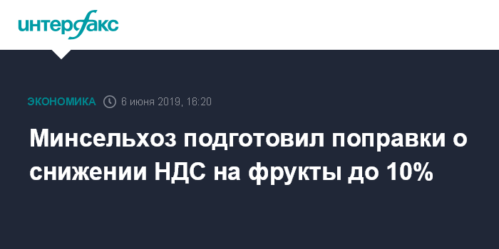 Москва. 6 июня. INTERFAX.RU - Минсельхоз РФ, выбирая между введением льготного НДС на фрукты и субсидиями их производителям, выбрал НДС и подготовил соответствующие поправки в Налоговый кодекс.