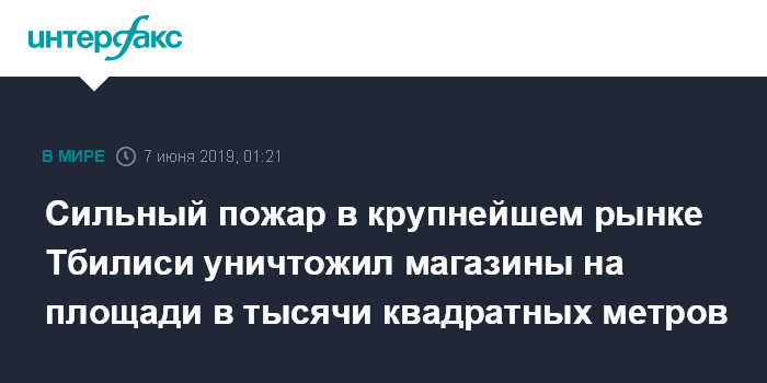 Москва. 7 июня. INTERFAX.RU - В результате сильного пожара, произошедшего в ночь на пятницу в крупнейшем в Тбилиси рынке в районе Лило, сгорели магазины с разными товарами на площади в несколько тысяч квадратных метров, сообщает Первый канал Общественного вещателя Грузии.