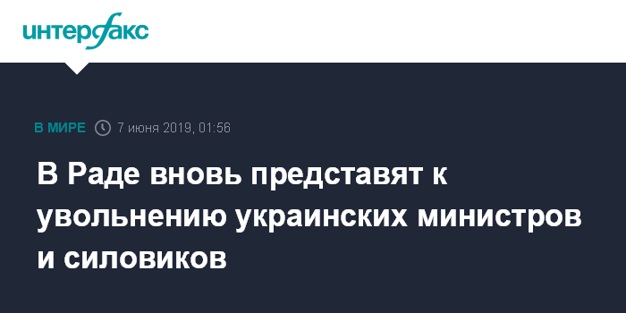 6 июня Верховная рада отказала президенту Зеленскому в увольнении министра иностранных дел Павла Климкина, министра обороны Степана Полторака и главы Службы безопасности Украины Василия Грицака.