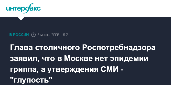 Глава столичного Роспотребнадзора заявил, что в Москве нет эпидемии гриппа, а утверждения СМИ - "глупость"