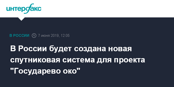 В мае пресс-секретарь госкорпорации Владимир Устименко сообщил журналистам, что проект контроля из космоса над поверхностью Земли в интересах государственных и частных организаций под названием "Государево око" находится в начальной стадии реализации, курирующее ведомство пока не определено.