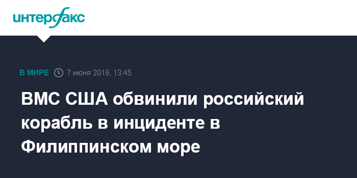 ВМС США обвинили российский корабль в инциденте в Филиппинском море