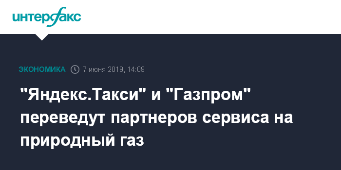 Москва. 7 июня. INTERFAX.RU - "Яндекс.Такси" переведет партнеров сервиса на использование природного газа, что позволит в несколько раз снизить расходы таксопарков на топливо и улучшить экологическую ситуацию. Соответствующее соглашение между "Яндекс.Такси" и "Газпром газомоторное топливо" было подписано в рамках Петербургского международного экономического форума.