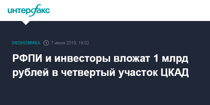 РФПИ и инвесторы вложат 1 млрд рублей в четвертый участок ЦКАД