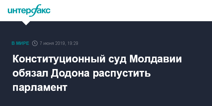 Москва. 7 июня. INTERFAX.RU - Президент Молдавии обязан распустить парламент и назначить дату досрочных выборов, если в течение трех месяцев после утверждения результатов выборов парламент не смог сформировать новое правительство. Такое решение вынес в пятницу Конституционный суд Молдавии.