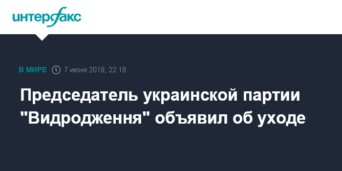 Председатель украинской партии "Видродження" объявил об уходе