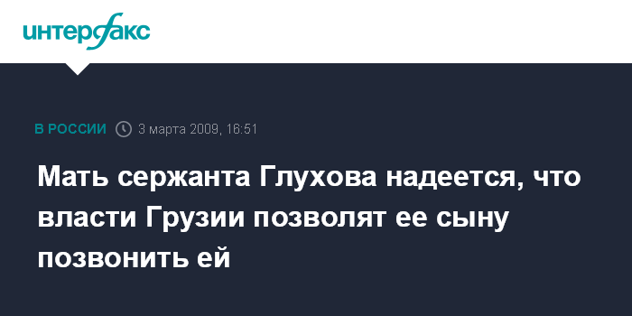По ее словам, сын так и не звонил ей с того момента, как она была в Цхинвали. "Нет, так и не звонил. Я уехала из Цхинвала 13 февраля, и с тех пор я с ним не разговаривала. Больше от него известий не было", - сказала Глухова.
