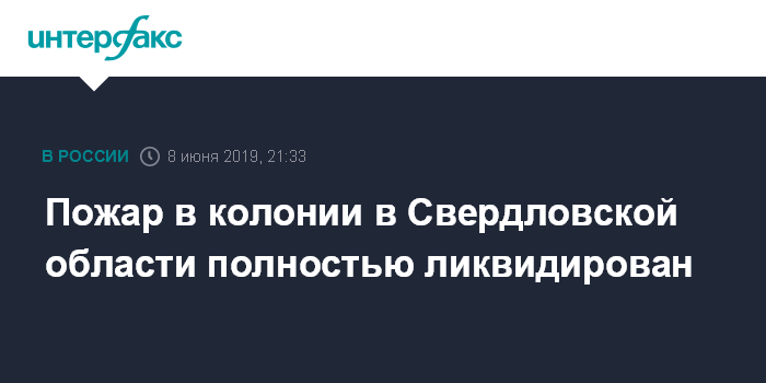 Пожар в колонии в Свердловской области полностью ликвидирован