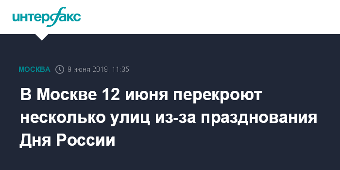 Москва. 9 июня. INTERFAX.RU - В центре Москвы 12 июня перекроют несколько улиц в связи с празднованием Дня России, сообщает в воскресенье сайт мэра Москвы.