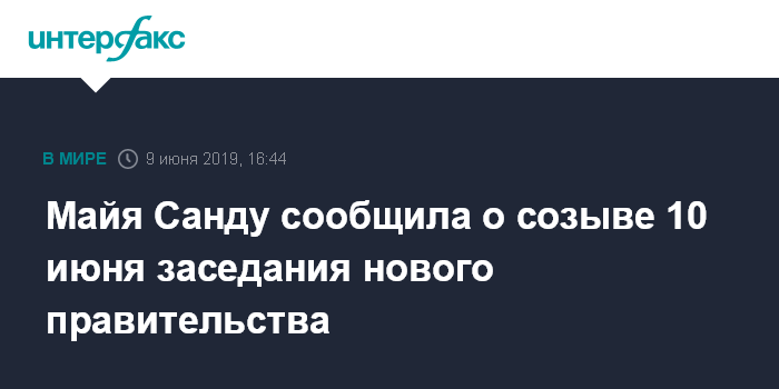 Москва. 9 июня. INTERFAX.RU - Новый премьер-министр Молдавии Майя Санду заявила на пресс-конференции, что в понедельник созывает первое заседание нового правительства, которое состоится в здании парламента.