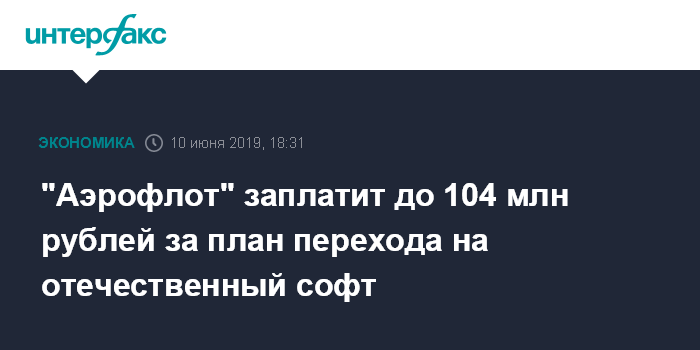 "Аэрофлот" заплатит до 104 млн рублей за план перехода на отечественный софт