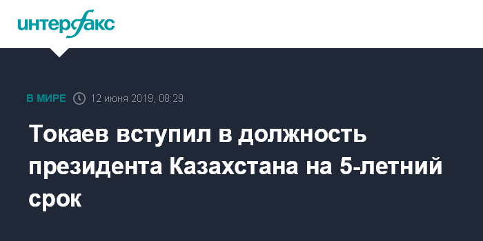 Москва. 12 июня. INTERFAX.RU - Избранный 9 июня на досрочных выборах глава Казахстана Касым-Жомарт Токаев в среду официально вступил в должность президента страны.