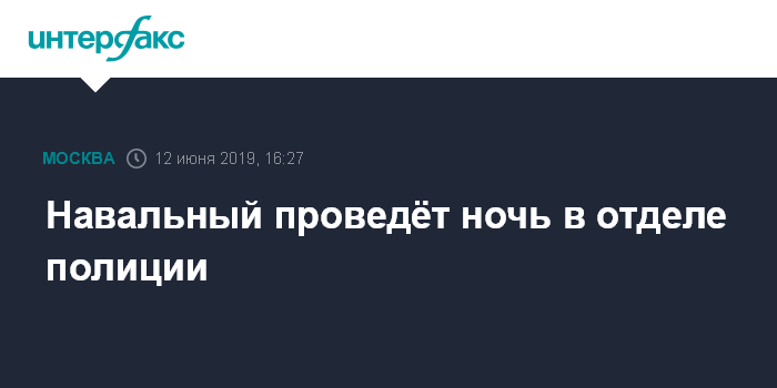 Москва. 12 июня. INTERFAX.RU - Задержанный на акции в Москве в поддержку журналиста Ивана Голунова оппозиционер Алексей Навальный останется в отделе полиции до утра, сообщил "Интерфаксу" в среду глава Фонда борьбы с коррупцией, юрист Иван Жданов.