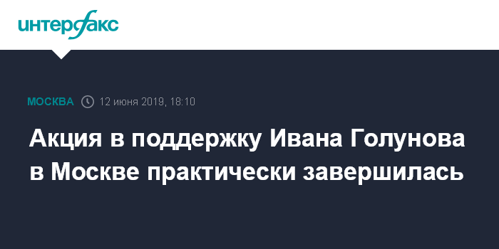Москва. 12 июня. INTERFAX.RU - Некоторые участники несанкционированной акции в поддержку журналиста Ивана Голунова по-прежнему находятся на площади Петровские ворота, акция проходит к концу, передает в среду корреспондент "Интерфакса".