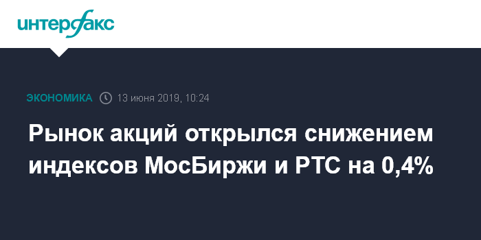 Рынок акций открылся снижением индексов МосБиржи и РТС на 0,4%