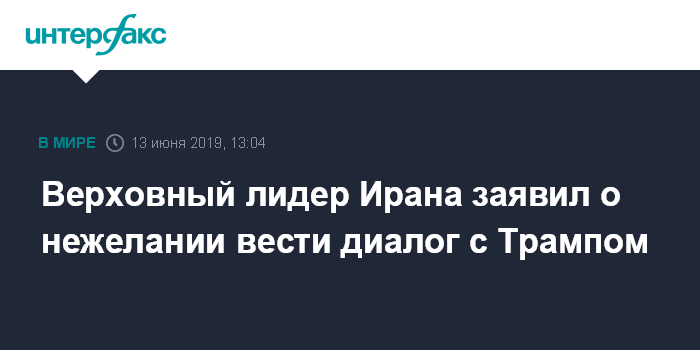 Москва. 13 июня. INTERFAX.RU - Верховный лидер Ирана аятолла Али Хаменеи не считает, что ему стоит обмениваться сообщениями с президентом США Дональдом Трампом, сообщается в твиттере аятоллы.