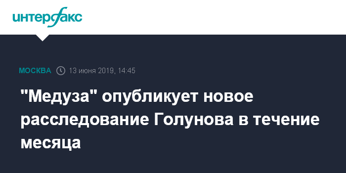 Москва. 13 июня. INTERFAX.RU - Издание "Медуза" планирует в течение месяца опубликовать новое расследование журналиста Ивана Голунова, которое он начал перед задержанием по делу о наркотиках. Об этом главный редактор издания Иван Колпаков сообщил "Ведомостям".