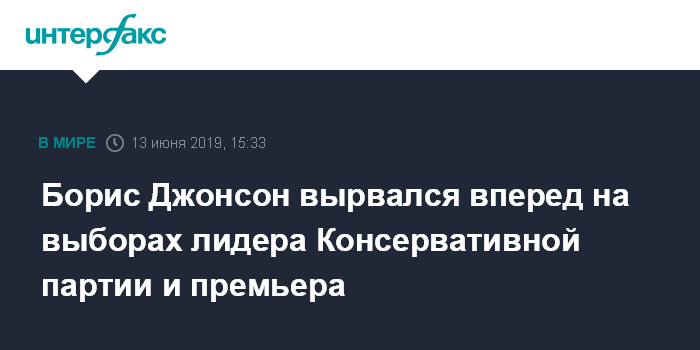Москва. 13 июня. INTERFAX.RU - Бывший министр иностранных дел Великобритании Борис Джонсон получил большинство голосов по итогам первого раунда голосования за будущего лидера Консервативной партии Великобритании и правительства, сообщают в четверг британские СМИ.